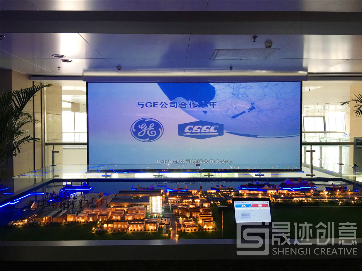 中船澄西是中國修船行業實力強、規模大、管理優的企業之一,晟跡根據中船澄西的需求及價值,融合新的創意理念與設計元素,晟跡打造的電子沙盤賦予了模型更加生動的內涵,更好地詮釋中船設計規劃的理念和圖片、視頻、動畫、解說等信息。中控系統功能讓參觀者對中船澄西修船、造船、宣傳片、文化片等點播功能更好的使用。使受眾者更好的加深對中船企業以及文化的了解。
