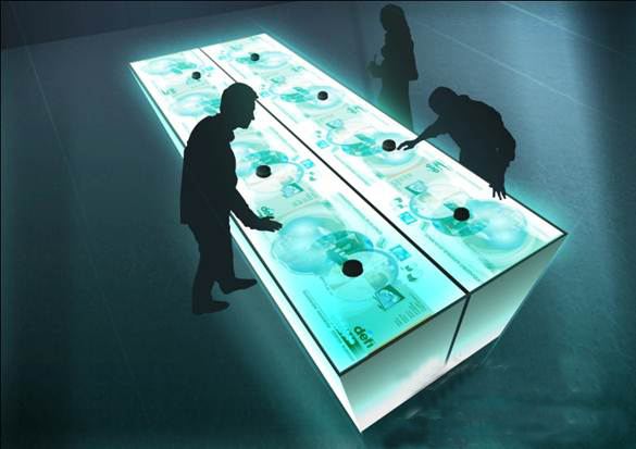 全息沙盤是沙盤的表現(xiàn)形式之一。是一種使用全息立體成像技術的高科技數(shù)字沙盤。3D圖像被全息玻璃光學反射并在空中立體成像,從而產(chǎn)生三維感和幻覺。
