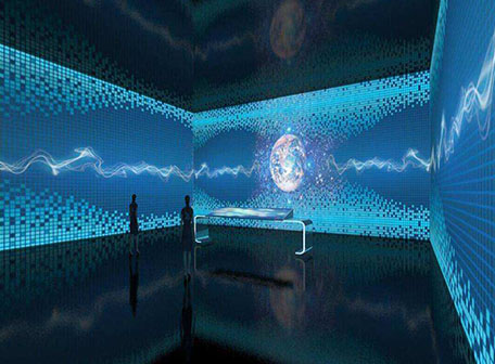 采用多通道融合方案,利用多臺投影畫面拼接,打造出動態版虛擬場景讓人有身臨其境的感覺。