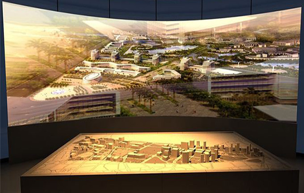 3D全息投影沙盤是一種現代高科技方法,以計算機技術為核心來生成逼真的三維圖像模型。多媒體系統集成加上投影顯示設備或其他顯示設備用于將計算機上的三維圖形圖像模型顯示在桌子上。具體而言,是將模擬的三維立體圖像準確地投影到實體模型的相應位置,使其與物理沙盤的交互式顯示的演示相協調,從而達到形象準確且生動的演示效果。