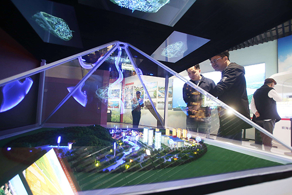 全息互動投影沙盤?在傳統(tǒng)電子沙盤的基礎上,將沙盤放置在定制的全息成像展示柜中,通過計算機多媒體控制技術,控制聲音、視頻等同步顯示,既可通過遙控、手控、感應式控制,也可以通過多媒體控制;既可數(shù)碼顯示、單點顯示、組合顯示、動態(tài)顯示等。吸引了眾多的房產(chǎn)開發(fā)商的注意力,爭相為自己展廳添置科技感十足的全息沙盤展項。