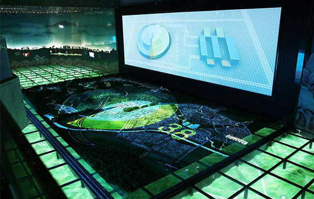 如今的數字沙盤越來越細致,其顯示效果和視覺效果也令人震驚,就像在觀眾面前呈現真實圖片一樣。數字沙盤分有很多的類型,包括三維數字沙盤、L幕數字沙盤、投影數字沙盤、折幕數字沙盤。